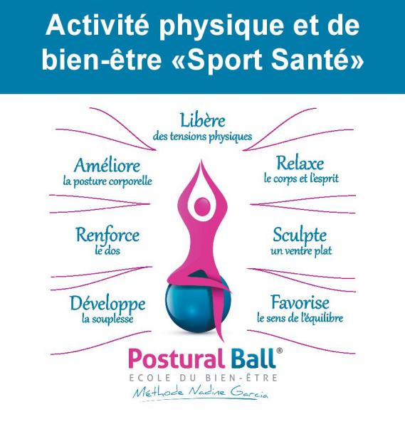 Le Postural Ball® se pratique en chorégraphie, avec fluidité, sur de la musique douce et en contact permanent avec un gros ballon. Il est fondé sur l’alternance de postures statiques - d’étirements passifs et de relaxation sans contraction musculaire volontaire, avec des transitions précises et 3 principes d’actions spécifiques à la méthode. Il permet à la fois de renforcer tous les muscles profonds et de relaxer le corps et le mental. Il est préventif. Son objectif est de ramener le corps dans un alignement idéal, créant ainsi une forte stabilité, limitant de ce fait douleurs et blessures permanentes.